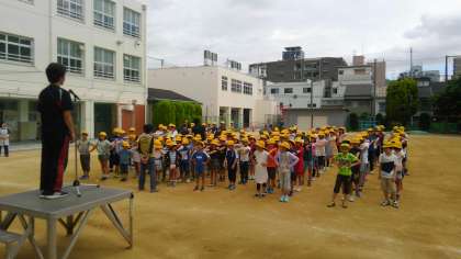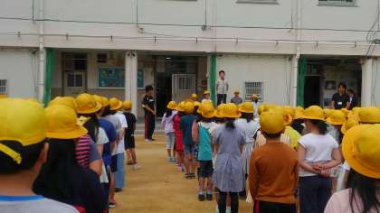 5月20日(月曜)全校朝会がありました。校長先生のお話のあと、児童会の各学年委員会の児童が、みんなが楽しくすごせる学校をつくりましょうと呼びかけていました。