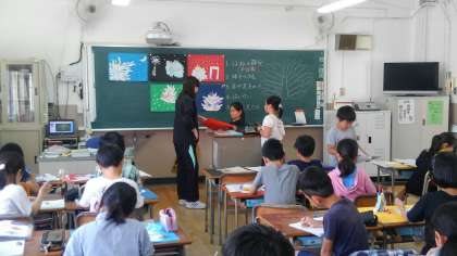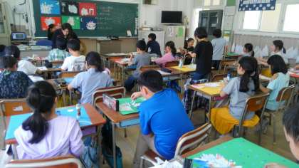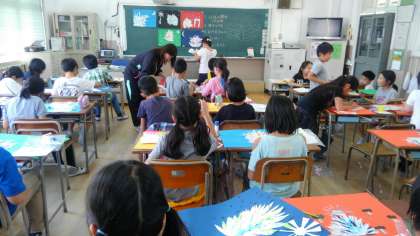 5・6時間目、4年生が図工の学習ではり絵の作品をつくっていました。