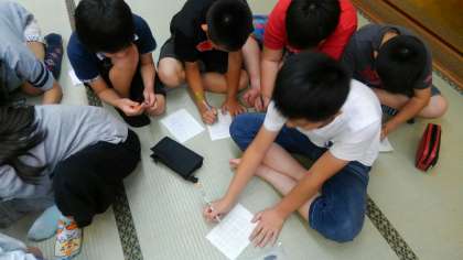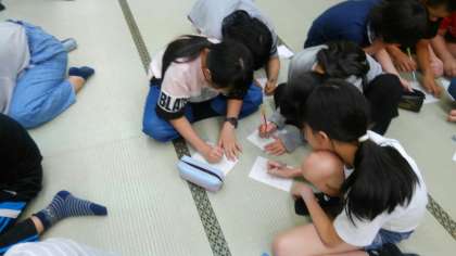 夕食のあと、大広間でみんなで、ゲームや出し物をして楽しみました。
