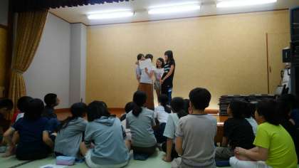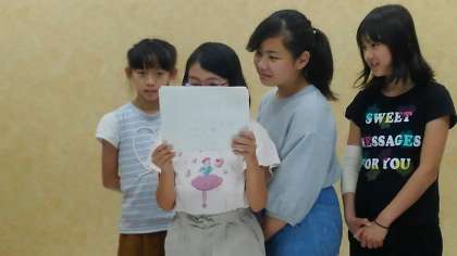 夕食のあと、大広間でみんなで、ゲームや出し物をして楽しみました。