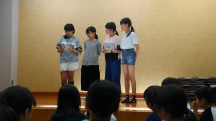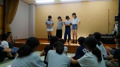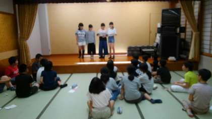 夕食のあと、大広間でみんなで、ゲームや出し物をして楽しみました。