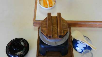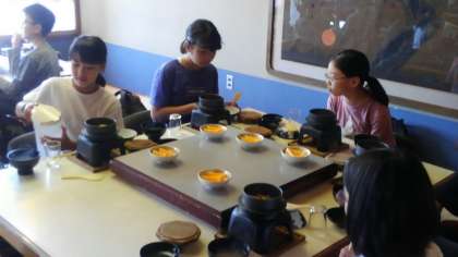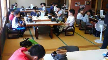 昼食会場に着いて、昼食を食べています。