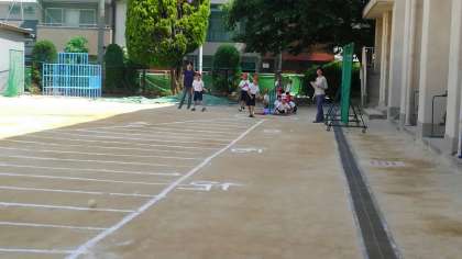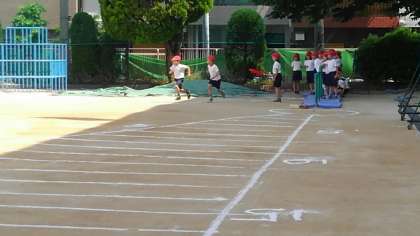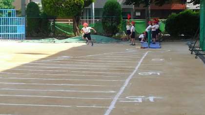 今日は、各学年新体力テストを実施しています。ボ—ル投げ、40m走、反復横とび、シャトルランを順番に行います。