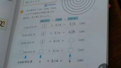 この時間のめあては、「円の直径の長さと円周の長さの関係を式に表そう」です。