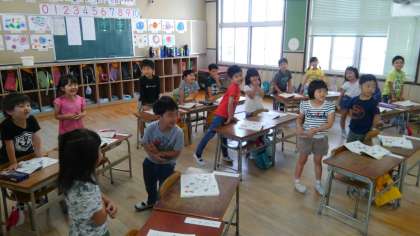 カタカナの学習のあと、しりとりをしていました。みんな、いろいろなことばを知っています。