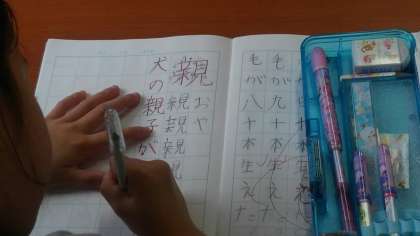4時間目、2年生がこくごの学習をしていました。「父」と「親」の漢字を学習していました。