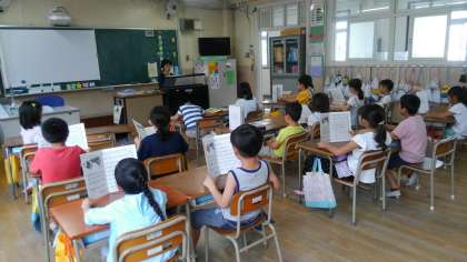 1時間目、歌声につられて、2年生の教室に行ってみると、「カントリーロード」と「カエルのがっしょう」を唱っていました。