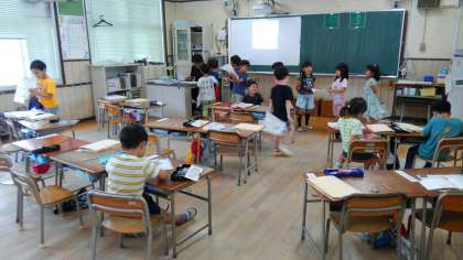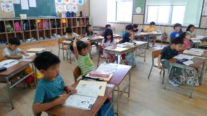 1時間目、1年生が「カタカナ」の「サ」と「ク」を学習していました。
