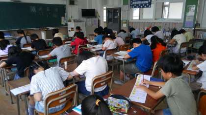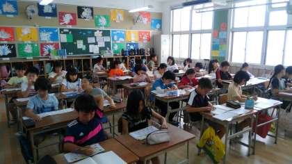 1時間目、4年生が国語の学習をしていました。漢字「連」「最」「共」「達」を学習をしていました。