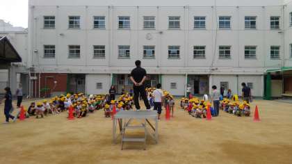 今日、全校活動がありました。22日(土曜)に行う緊急時避難訓練の整列の仕方を練習しました。
