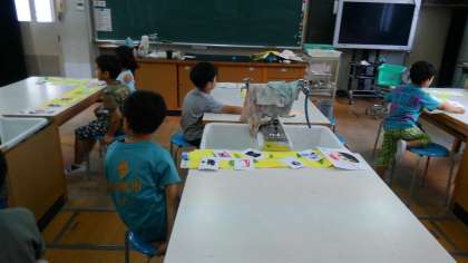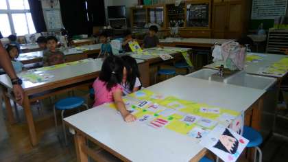 1時間目、1年生が今までで思い出に残っていることを絵に描いていました。
