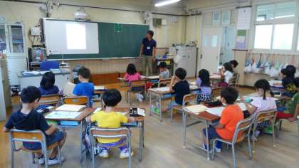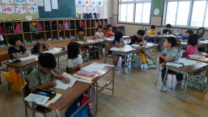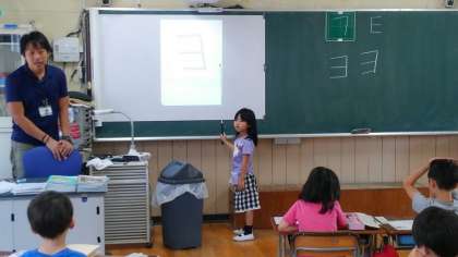 朝の会の前に、1年生がこくごの学習をしていました。