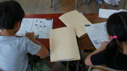 そのあと、説明文「どうやってみをまもるのかな」の文章を、順番にみんなで読んでいました。