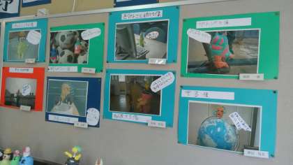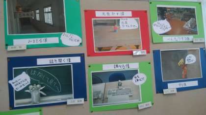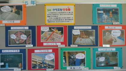 クラスを守る像「いつでもやさしく、なんでもポジティブ、楽しく学ぶクラス」であるように、支えてくれている守り神を想像してつくりました。