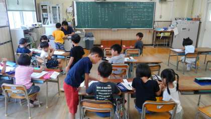 お互いで教えあいをしていました。