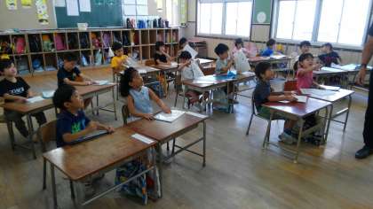 1年生が朝の会をしていました。