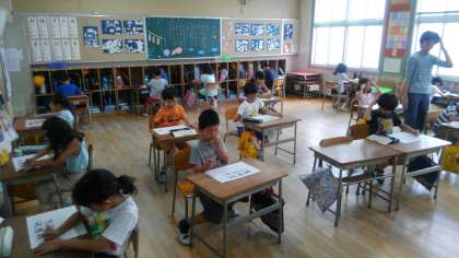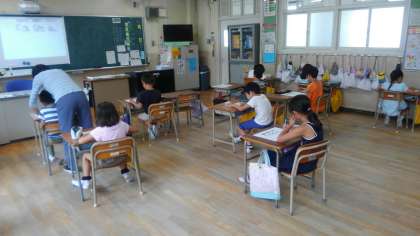 3時間目、2年生が今まで学習したところのテストをしていました。