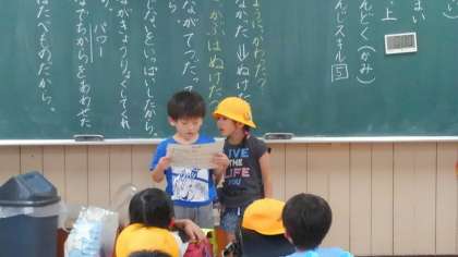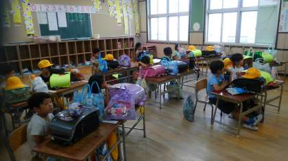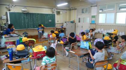 1年生が、5時間目の道徳の時間のあと、終わりの会をしていました。