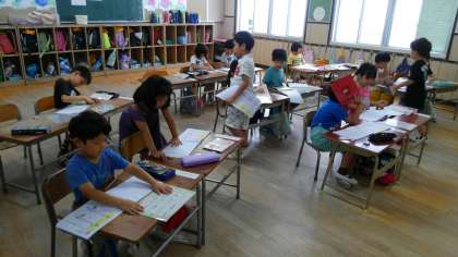 朝の学習で漢数字の「六」と「七」を学習していました。