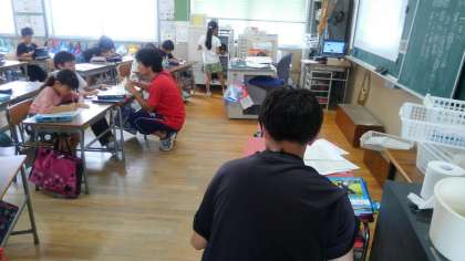 実習生の今井先生が、ノートを点検していました。