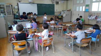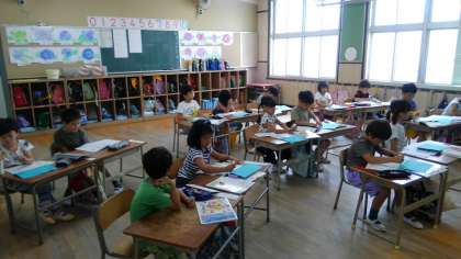 1時間目、1年生が漢字の学習のあと、算数の学習をしていました。