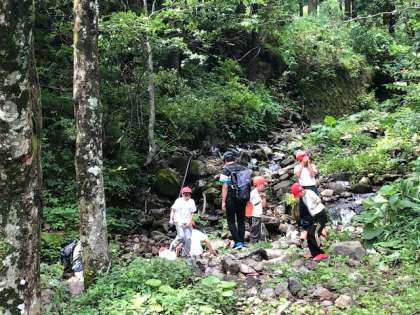 協力して頑張っています。いろんな植物を観察したり、川の水の冷たさを感じたりしています!