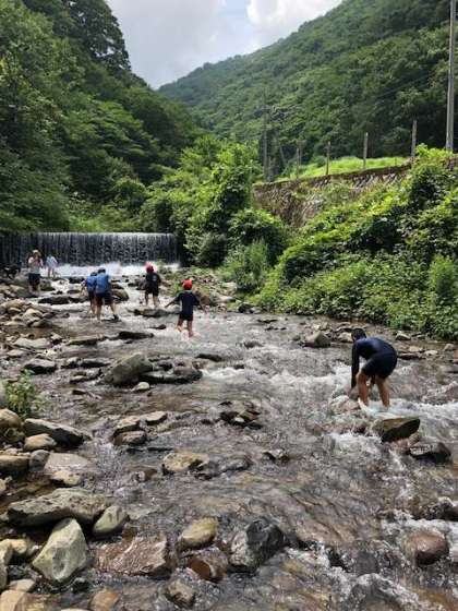 川遊びを楽しんでいます!みんな大興奮!!