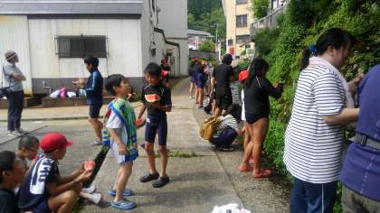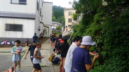 宿舎に帰ってきました。おやつにスイカをいただきました。