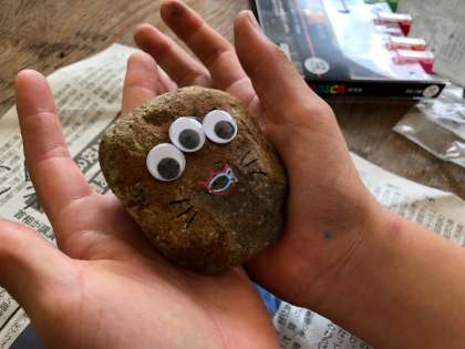 河原で拾った石でストーンペインティングをしています!いろんなハチ高原の自然がつまっていますね。