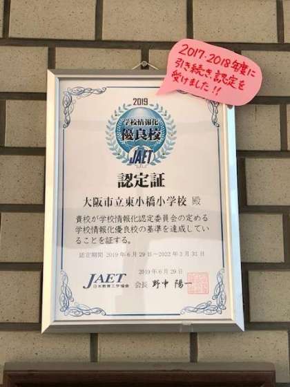 また6月末には、日本教育工学協会(JAET)による学校情報化認定で、引き続き優良校に認定されました。