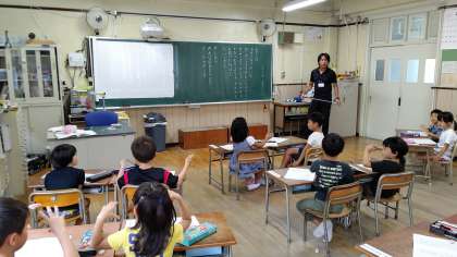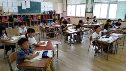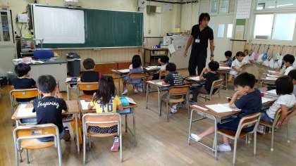 漢字の練習をしたあと、『かみふうせん』という詩を音読していました。