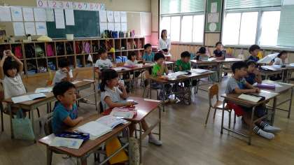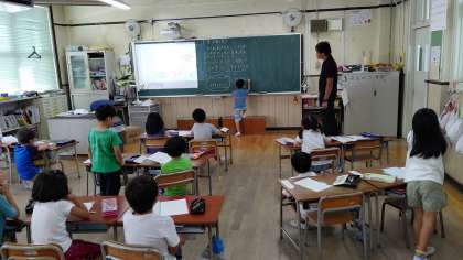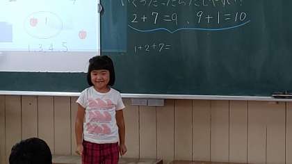 5時間目、1年生が算数の学習をしていました。たし算の学習をしていました。二桁になるたし算です。