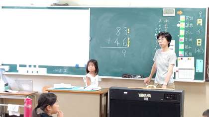 2時間目、2年生が算数の学習をしていました。ひっ算のしかたを考えていました。