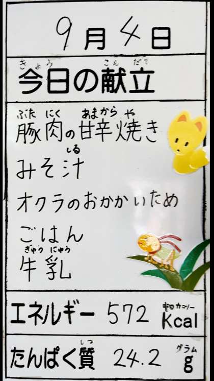 9月4日(水曜)の給食