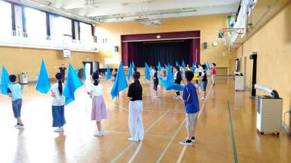 5時間目、6年生が講堂で運動会の練習をしていました。いよいよ小学校最後の運動会です。6年生が中心になって、運動会を盛り上げてください。