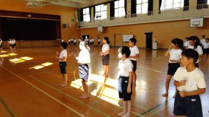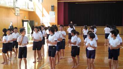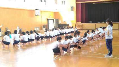 5時間目から、5・6年生が講堂で、運動会の練習をしていました。