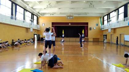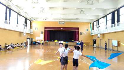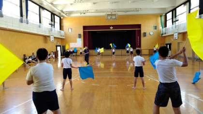 3・4時間目、5・6年生が講堂で、運動会の練習をしていました。