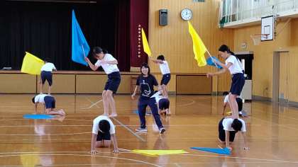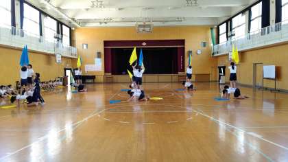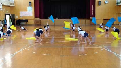 3・4時間目わ、5・6年生が講堂で、運動会の練習をしていました。