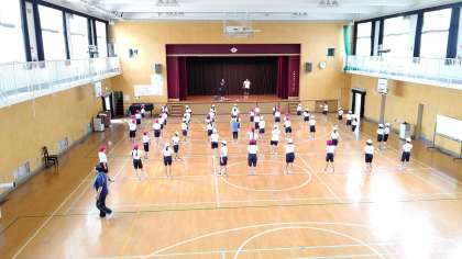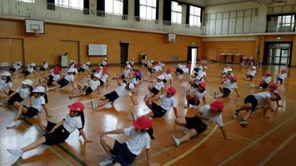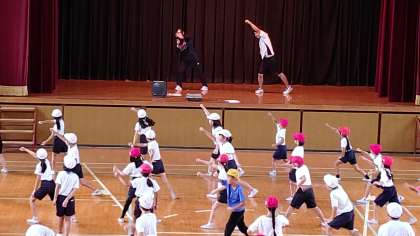 3時間目、3・4年生が講堂で運動会の練習をしていました。