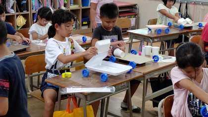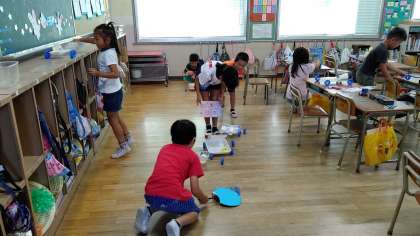 5・6時間目、2年生が生活科の学習をしていました。ヨットカーを作っていました。