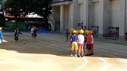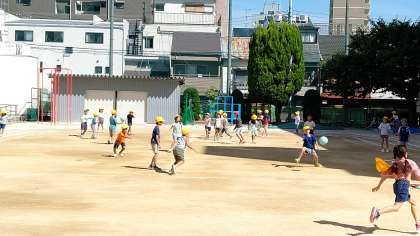 1時間目と2時間目の間の休み時間、1年生から3年生までの児童が、元気よく遊んでいました。