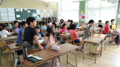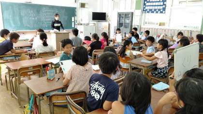 2時間目、4年生がみんなでゲームをして楽しんでいました。