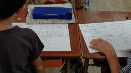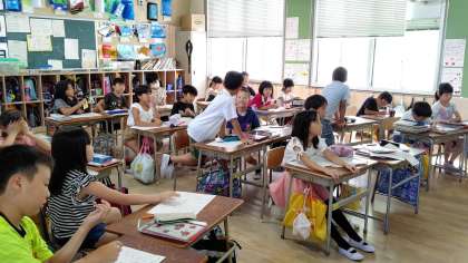 2時間目、3年生が運動会団体演技の動きの確認をしていました。
