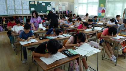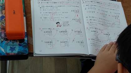 3時間目、4年生が算数の学習をしていました。割りきれない、余りのでるわり算を学習していました。