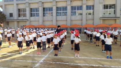 1時間目、全校活動で運動会の予行がありました。
