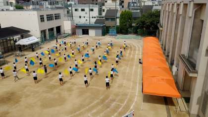 4時間目、5・6年生が運動場で運動会の練習をしていました。