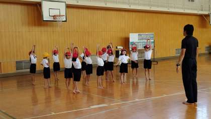 10月1日(火曜)2時間目、1年生が講堂で体育の学習をしていました。