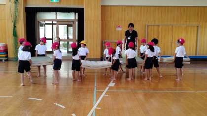 自分たちで、マットを運んで準備をしていました。後片づけも自分たちで、できるように練習していました。