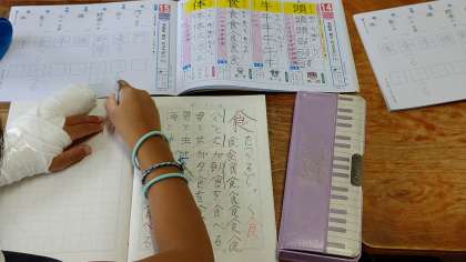 1時間目、2年生がこくごの学習をしていました。「体」の漢字を学習していました。