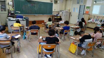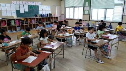 朝の学級活動で、漢字のテストをしていました。先生が少しの間いなくても、自分たちで、しっかりやっていました。